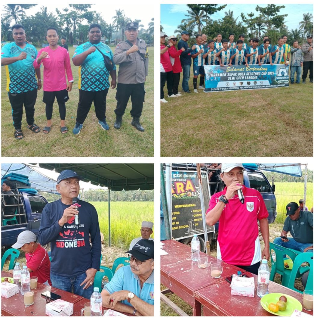Bupati Langkat H.Syah Afandin.SH yang juga sebagai Ketua Umum KONI Kabupaten Langkat, diwakili oleh sekertaris KONI langkat H.Hadi ilham membuka acara turnamen sepak bola selotong CUP 2025 Semi Open Langkat, dilapangan sepak bola dusun IV Desa Selotong Kecamatan Secanggang Kabupaten Langkat Peropinsi Sumatra Utara pada Kamis (28/08/2025.