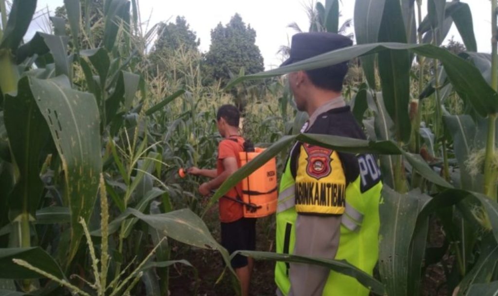 Bhabinkamtibmas Tinjau Perawatan dan Pemupukan Kebun Jagung dalam Program Ketahanan Pangan