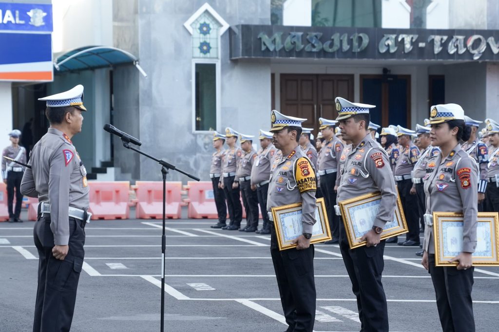 Penghargaan diberikan kepada personel Ditlantas Polda Sumatera Selatan diantaranya Dirlantas Polda Sumsel Kombes Pol M. Pratama Adhyasastra SIK,MH, Kasubdit Gakkum Ditlantas Polda Sumsel Kompol Irwan Andeta dan Kasi Laka Subdit Gakkum Ditlantas Polda Sumsel Kompol Putu Eka Dhenda.