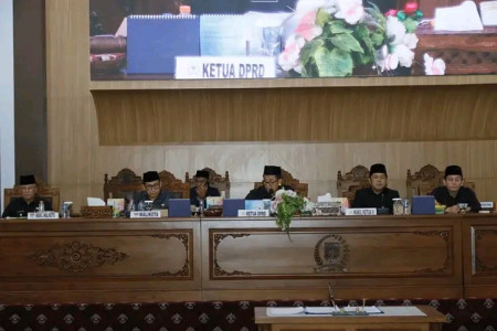 Wali Kota Lubuklinggau H SN Prana Putra Sohe, bersama Wakil Wali Kota Lubuklinggau H Sulaiman Kohar hadiri rapat paripurna DPRD Lubuklinggau dengan agenda mendengarkan laporan pansus dewan hasil pembahasan empat raperda usulan pemerintah kota Lubuklinggau dan enam rapersa inisiatif DPRD kota Lubuklinggau,(06/03/23).