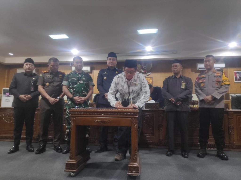 Pengesahan ini dilakukan dalam Rapat Paripurna VIII DPRD OKU Masa Persidangan Kedua Tahun 2025 yang berlangsung di Ruang Sidang Paripurna DPRD OKU pada Rabu (22/01/2025). Rapat dipimpin oleh Wakil Ketua II DPRD OKU, Parwanto, S.H., M.H., dan dihadiri oleh Pj Bupati OKU M. Iqbal Alisyahbana, serta unsur Forum Koordinasi Pimpinan Daerah (Forkopimda), termasuk Dandim 0403/OKU Letkol Inf. Harri Feriawan Rumawatine, perwakilan Polres OKU, Kejari OKU Choirun Parapat, S.H., M.H., Ketua Pengadilan Negeri Elvin Adrian, S.H., M.H., serta kepala dinas dan tamu undangan lainnya.