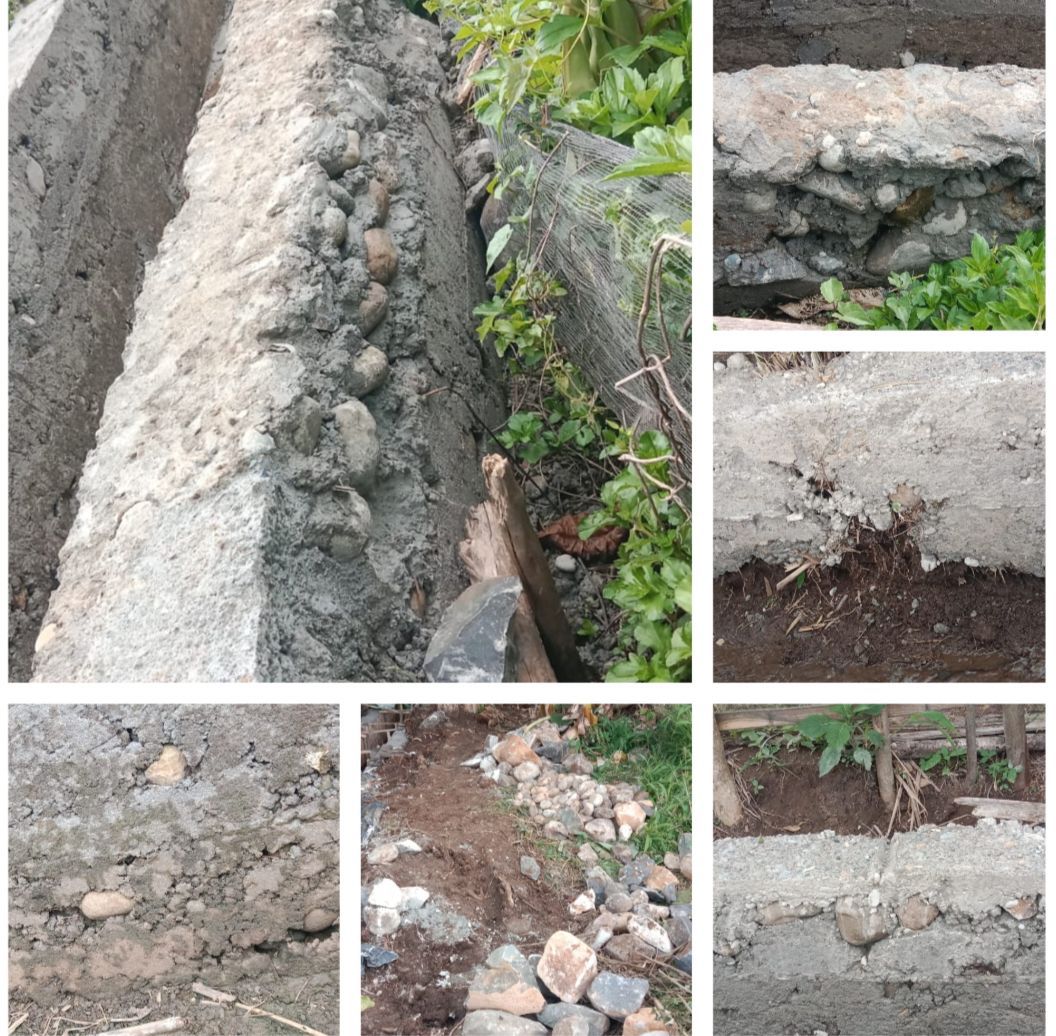Kesalahan fatal juga terlihat pada metode pengecoran.Robert, warga lain yang mengaku pernah menjadi tukang bangunan, menyoroti penggunaan batu berukuran sangat besar, sebesar batu pondasi, yang langsung dicor ke dalam adukan. “Mana ada pengecoran menggunakan batu besar, seharusnya jika langsung dicor mereka menggunakan besi dan bila menggunakan batu dipasang secara tersusun baru menggunakan adukan,” jelasnya pada 11 Oktober 2025. Praktik ini menyimpang dari standar teknis konstruksi yang berlaku.