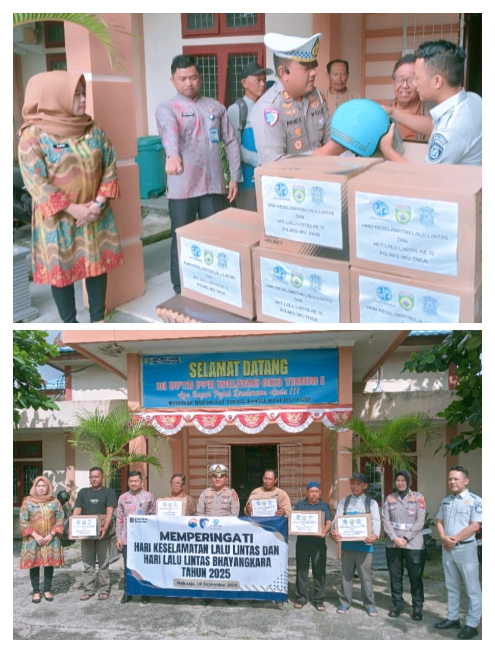 Martapura, OKU Timur, Sumatera Selatan.Globalnusantara.id – 19 September 2025 – Satuan Lalu Lintas (Satlantas) Polres OKU Timur mencanangkan Hari Keselamatan Lalu Lintas yang akan diperingati setiap tanggal 19 September. Pencanangan ini ditandai dengan kegiatan pembagian helm berstandar SNI di Kantor Samsat Martapura, Jumat (19/9/2025).