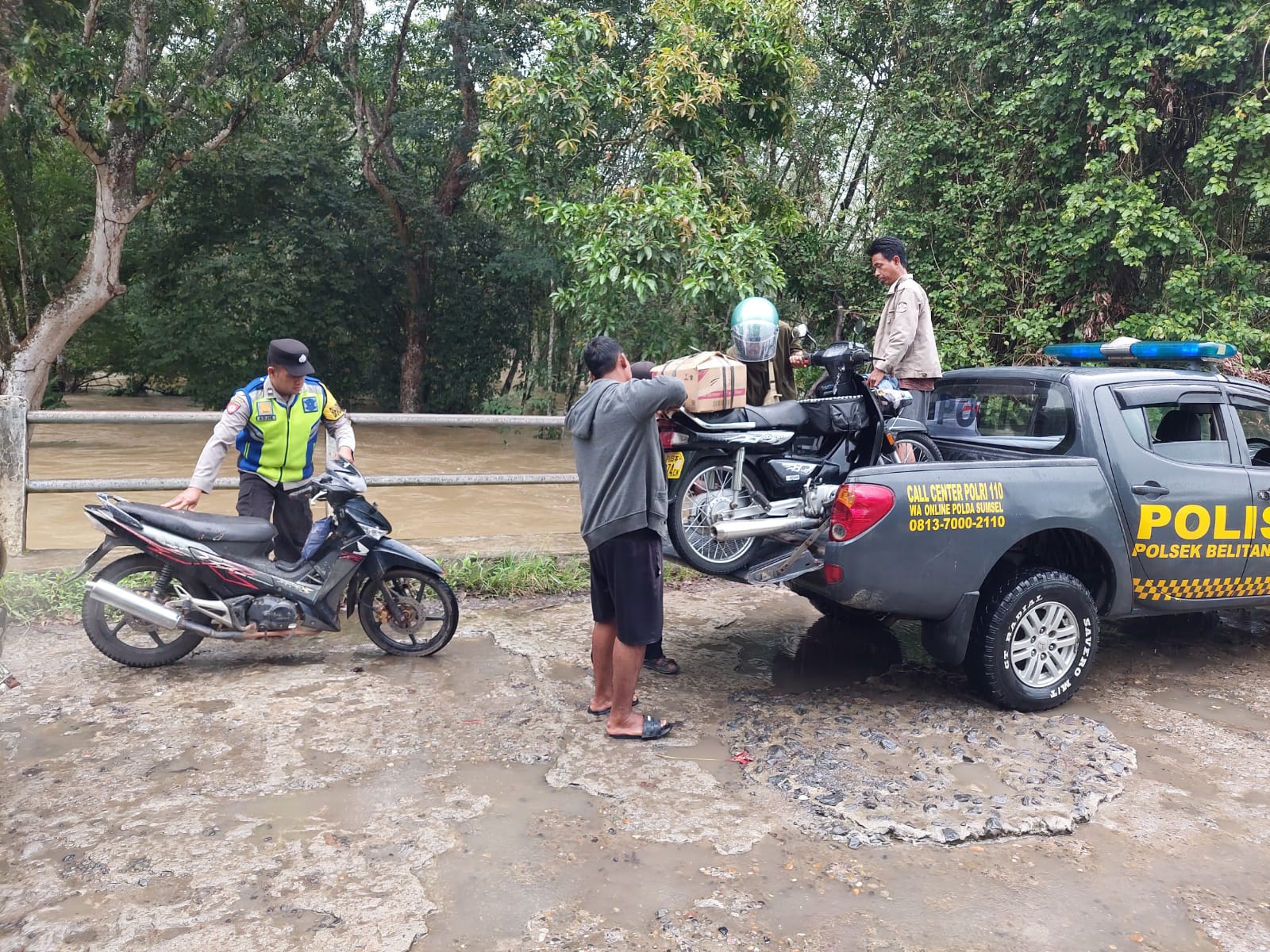 Menanggapi kondisi ini, Kepolisian Sektor (Polsek) Belitang III bersama Forum Koordinasi Pimpinan Kecamatan (Forkopimcam), termasuk unsur TNI dan Satpol PP, segera turun ke lokasi untuk memberikan bantuan kepada masyarakat yang kesulitan melintas. Personel kepolisian membantu mengatur arus lalu lintas serta menuntun warga yang hendak melewati jalan yang masih tergenang air.