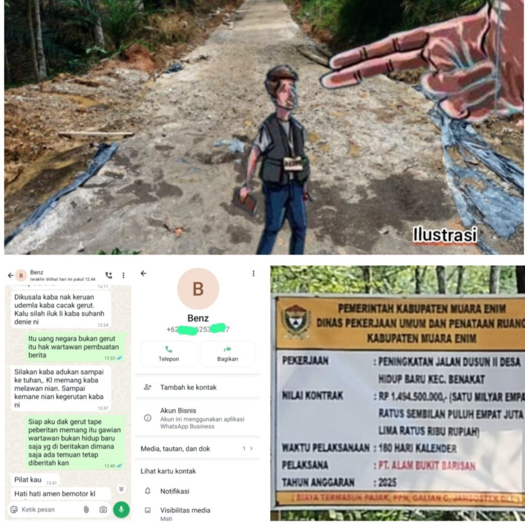 Muara Enim,Sumsel,Globalnusantara.id,17 September 2025) – Sebuah insiden pelanggaran kebebasan pers terjadi di Kabupaten Muara Enim, Sumatera Selatan. Bendahara Ikatan Wartawan Online Indonesia (IWOI) Kabupaten Muara Enim, berinisial KH, menerima ancaman melalui aplikasi WhatsApp dari oknum kontraktor pelaksana proyek Pembangunan Peningkatan Jalan Cor Beton di Desa Hidup Baru. Ancaman ini merupakan respons atas investigasi jurnalistik yang dilakukan terhadap dugaan penyimpangan dalam proyek senilai Rp 1,494 miliar tersebut.