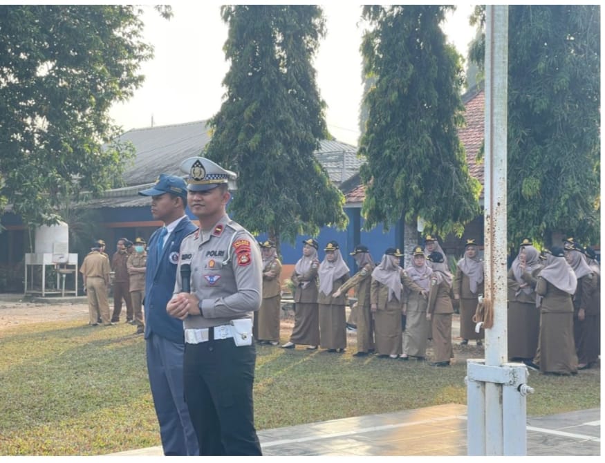 Kanit Gakkum Satlantas Polres Prabumulih IPDA Reno Oktarua.,S.H Sebagai Pembina Upacara di SMA Negeri 2 Kel.Tanjung Raman Kec.Prabumulih Selatan Kota Prabumulih