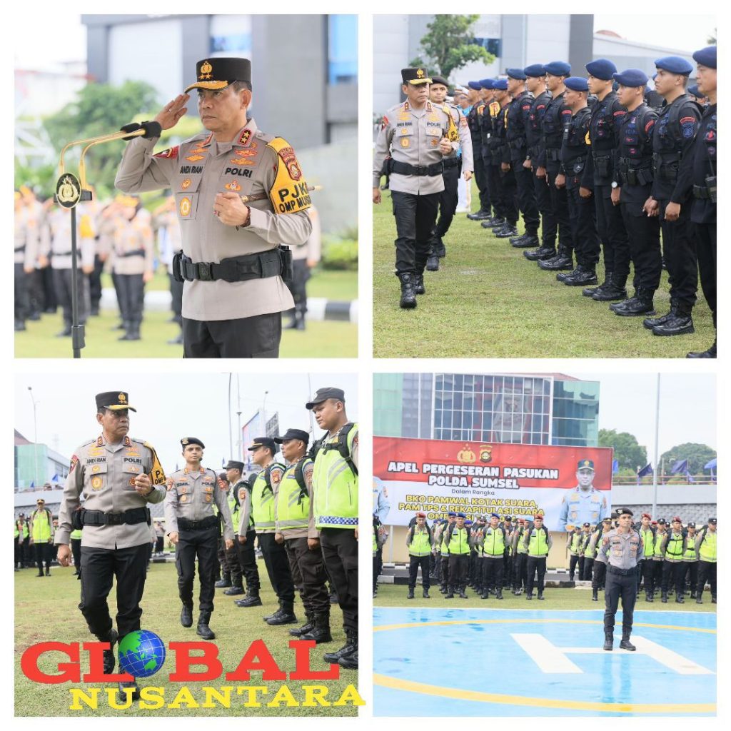 GlobalNusantara.com,PALEMBANG – Bertempat dilapangan apel Mapolda pada Sabtu (23/11/2024), Kapolda Sumsel Irjen Andi Rian R Djajadi memimpin penggelaran pasukan yang akan diterjunkan ke jajaran untuk mengamankan dan mengawal tahapan pemungutan dan penghitungan suara Pilkada serentak 2024.