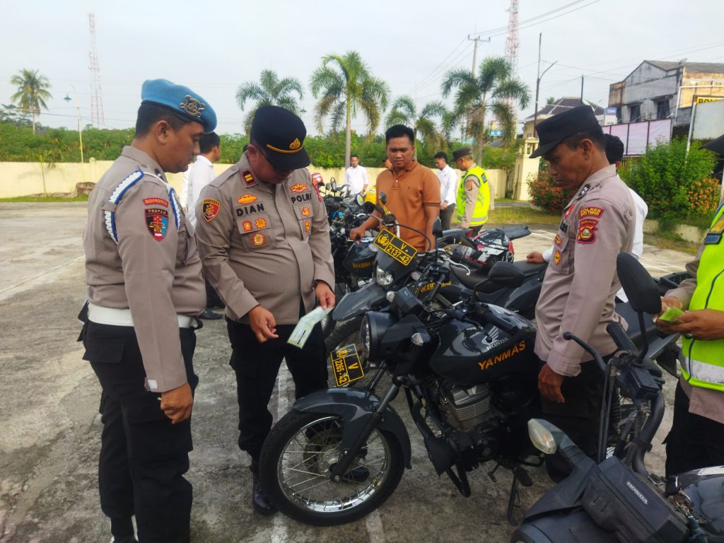 Pemeriksaan dilakukan dengan pendataan kendaraan dinas serta pengecekan kondisi fisik dan administrasi kendaraan. Langkah ini penting guna memastikan setiap kendaraan dalam keadaan optimal untuk digunakan dalam tugas operasional.