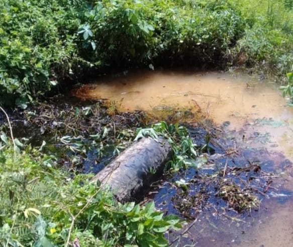 Kebocoran Pipa Minyak Milik PT Pertamina Terjadi di Dusun 1 RT 01 Desa Kasih Dewa.