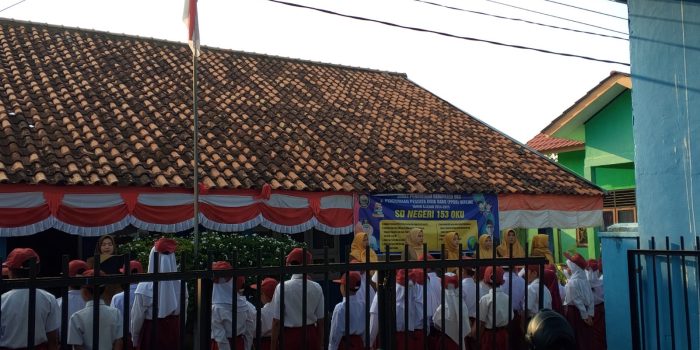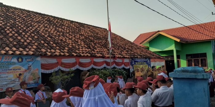 SD negeri 153 Oku melakukan kegiatan bersih bersih di lingkungan sekolah.