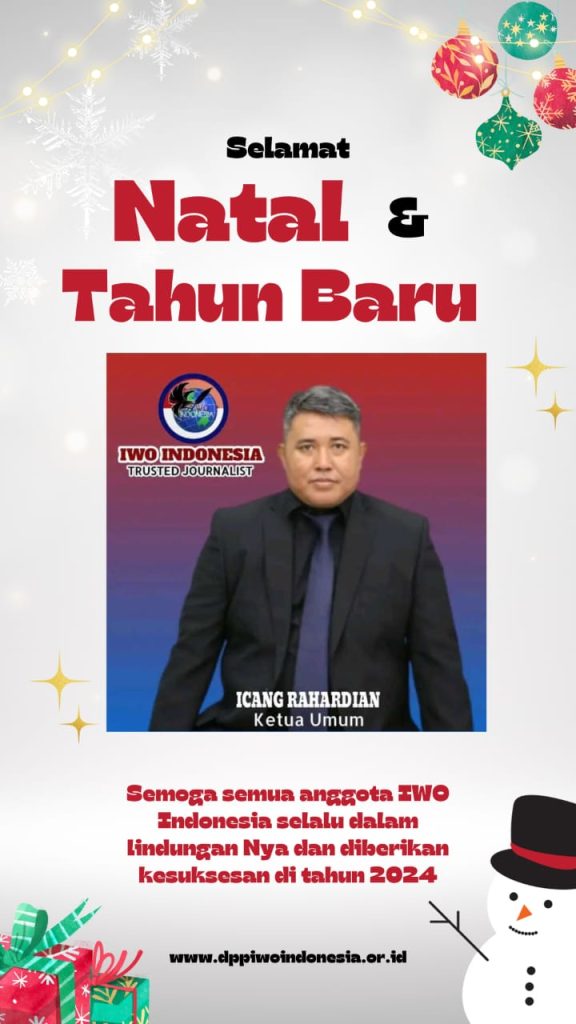 “Dengan segala kerendahan hati, saya pribadi dan atas nama Ketua Umum Dewan Pimpinan Pusat (DPP) dan segenap keluarga besar Ikatan Wartawan Online Indonesia (IWOI) mengucapkan selamat Hari Natal 2023 dan Tahun Baru 2024 semoga kita semua senantiasa mengagungkan rasa dan perasaan cinta kasih kepada sesama.” Ucapnya.