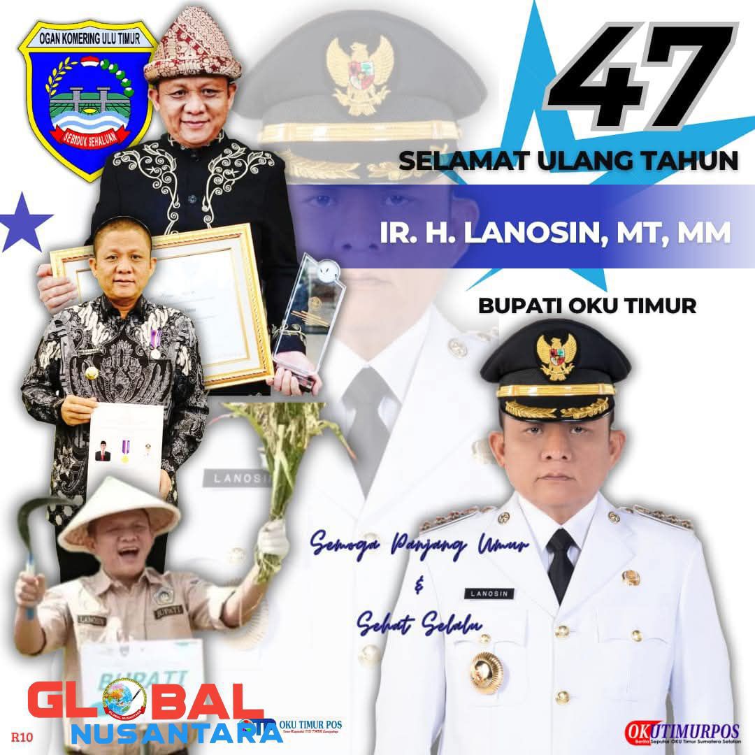 GlobalNusantara.id,OKU Timur, 31 Mei 2025 — Bupati OKU Timur, Ir. H. Lanosin, M.T., M.M., merayakan ulang tahunnya yang ke-47 dengan penuh rasa syukur dan pencapaian luar biasa. Di usia yang matang, Lanosin mencatatkan 76 prestasi membanggakan selama menjabat sebagai Bupati, membuktikan komitmennya dalam membangun OKU Timur secara merata, berkeadilan, dan berkelanjutan.