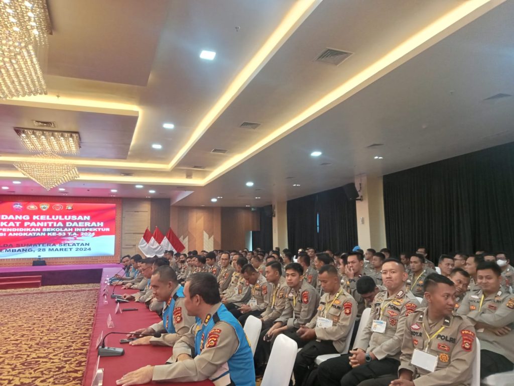 Luar Biasa Sebanyak 111 Bintara Polda Sumsel dinyatakan lulus terpilih calon perwira dan ikut Sekolah Inspektur polisi (SIP) Tahun 2024 di Sukabumi Jawa Barat. Kelulusan itu diumumkan pada sidang kelulusan seleksi penerimaan SIP Polda Sumsel yang dipimpin Kepala Biro (Karo) Sumber Daya Manusia (SDM), Kombes Pol Sudrajad Hariwibowo SIK,MSI didampingi Kabag Dalpers Ro SDM Polda Sumsel AKBP Zainal Arrachman SiK, di Auditorium lantai VII gedung Utama Presisi Polda Sumsel, Kamis (28/3/2024) Sore