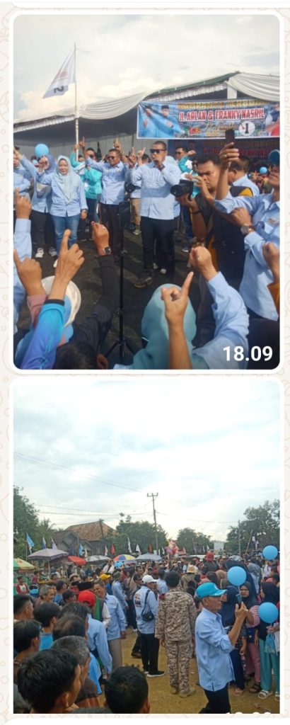PRABUMULIH, Global Nusantara.Sungai Medang . Cak Arlan dan Bang Franky disambut ribuan warga Sungai Medang, Tanjung Telang, dan Muara Sungai di Lapangan Sepakbola Kelurahan Sungai Medang ketika berkampanye, Sabtu sore, 5 Oktober 2024.