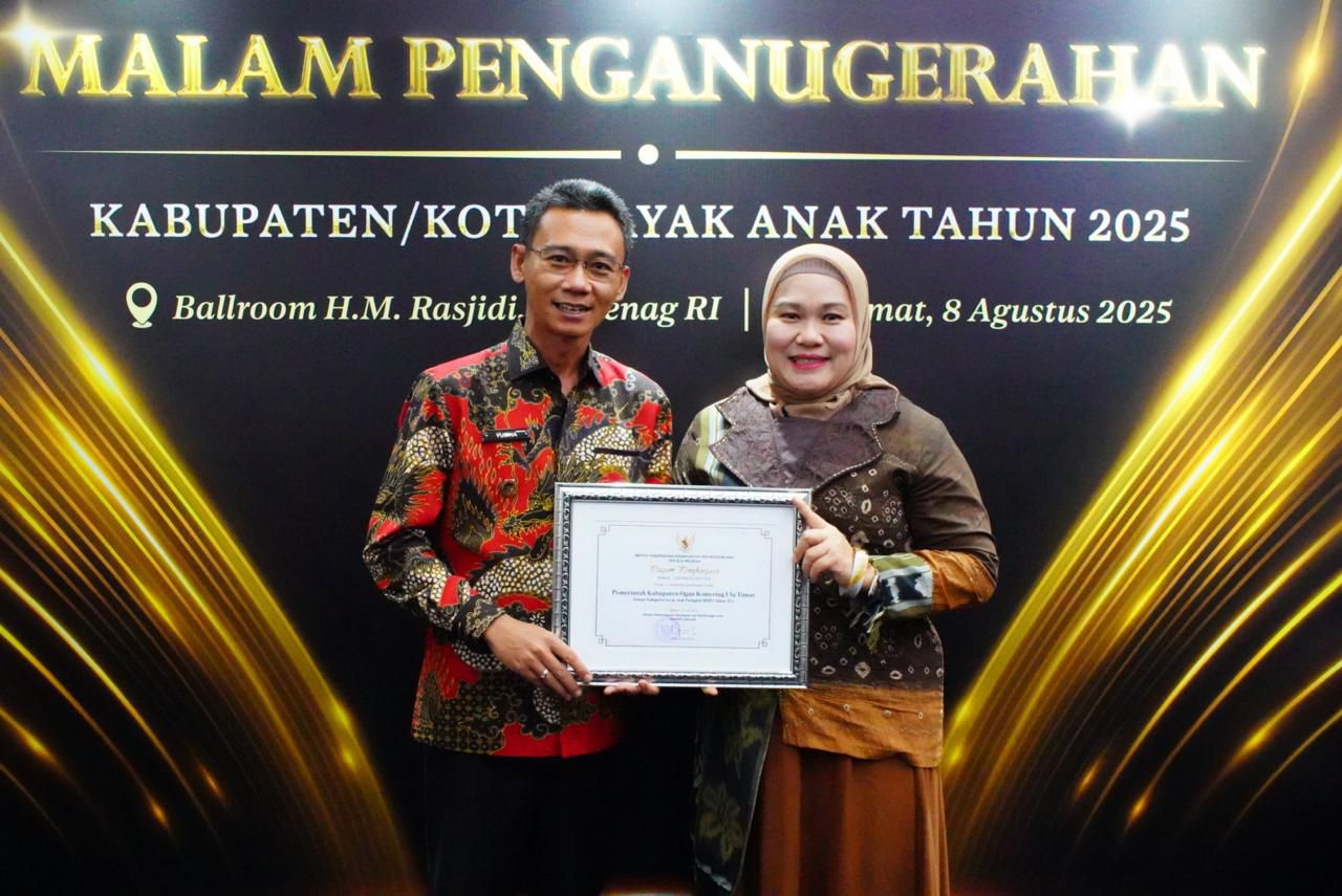 JAKARTA – Kabupaten Ogan Komering Ulu Timur kembali mengukir prestasi membanggakan di tingkat nasional. Pada penilaian tahun 2024, OKU Timur berhasil meraih Piagam Penghargaan Kabupaten Layak Anak (KLA) Kategori Nindya dari Kementerian Pemberdayaan Perempuan dan Perlindungan Anak (Kemen PPPA) Republik Indonesia.