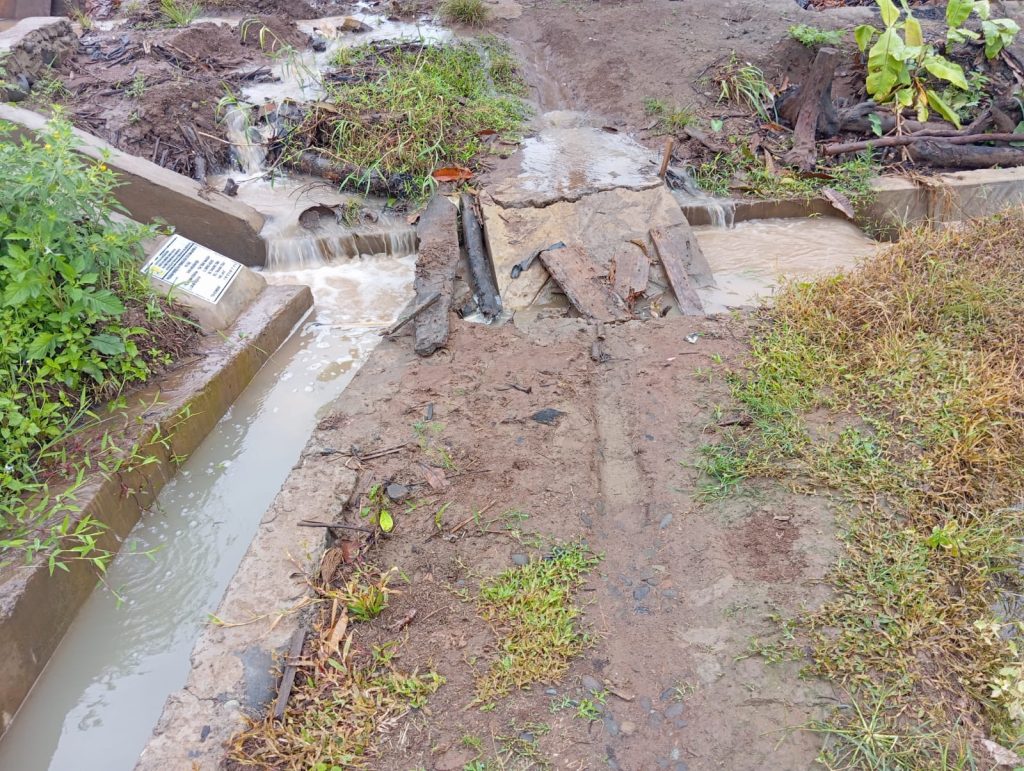 Pembangunan irigasi siring cacing diDesa “Program Percepatan Peningkatan Tata Guna Air Irigasi (P3-TGAI) Tahun anggaran 2024 Pelaksana Kegiatan P3A Tebat Makmur,Lokasi Kegiatan Tanjung Tebat Kabupaten Lahat Provinsi Sumatera Selatan diduga dibangun Asal jadi,dibangun Desember tahun 2024 lima hari selesai pengerjaan sudah roboh dan rusak parah sudah dilaporkan namun tidak ada respon , diduga tanpa galian pondasi dan Pembesian, Material yang digunakan diduga tidak sesuai dengan SPEK pembangunan siring irigasi, diduga tidak menggunakan Skor tengah penguat siring.