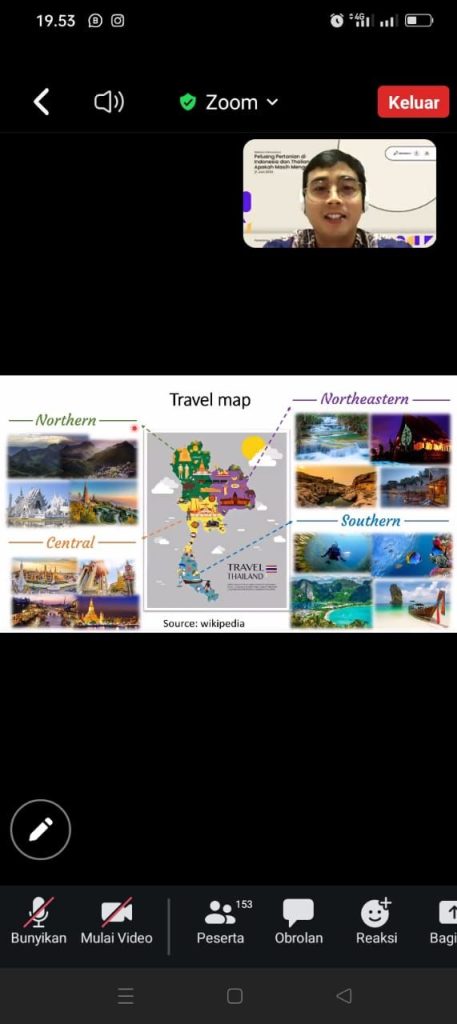 Prabumulih, Global Nusantara– PT Pertamina EP (PEP) Limau Field menyelenggarakan Seminar Internasional yang dijajaki bersama Perhimpunan Mahasiswa Indonesia Thailand (PERMITHA) dan Creative Movement Indonesia yang bertajuk “Peluang Pertanian di Indonesia dan Thailand, Apakah Masih Menggiurkan?”. Kegiatan tersebut berlangsung secara daring dan dihadiri oleh kurang lebih 200 peserta yang terdiri dari perwira PEP Limau Field, Mahasiswa Khon Kaen University, dan masyarakat umum dari negara Indonesia dan Thailand, pada Jumat (21/06).