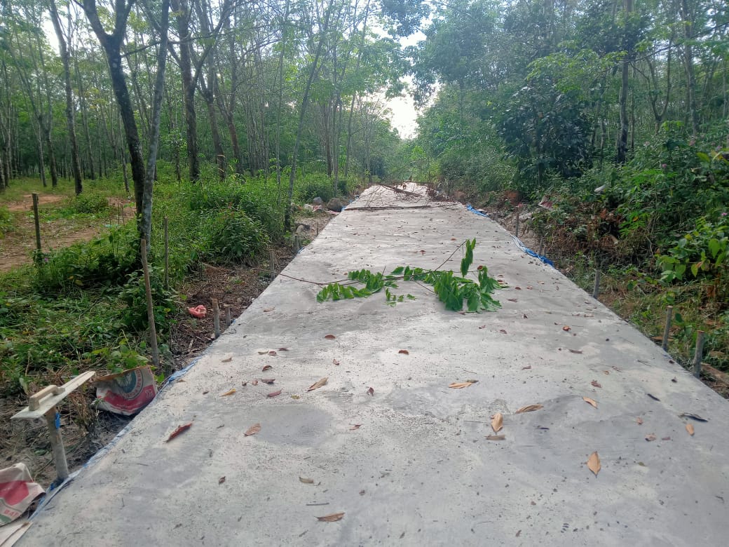 Sebelum dibangun jalan tersebut adalah merupakan jalan setapak menuju areal perkebunan masarakat kini sudah bisa di manfaatkan oleh masarakat umum ujar salah satu pengendara yang sempat kami wawancara.