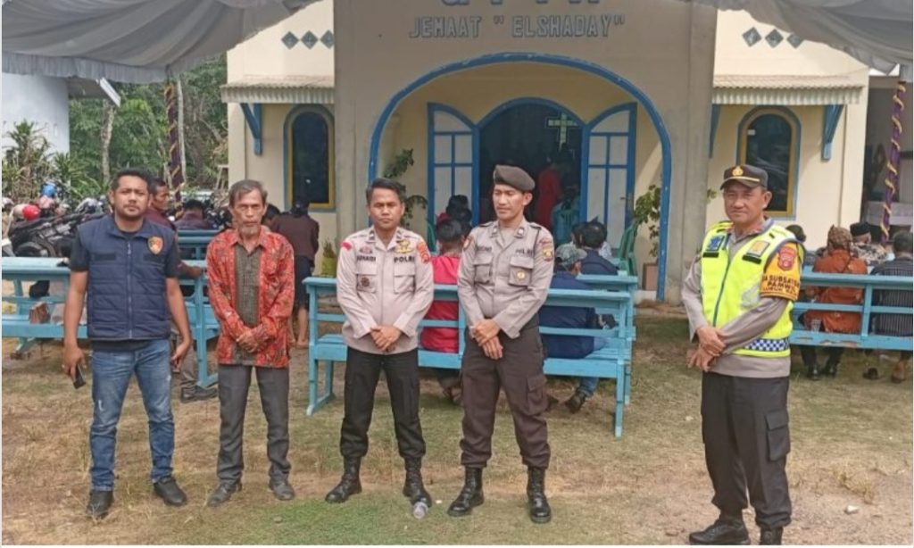 Kegiatan pengamanan ibadah perayaan Natal 2024 yang berlangsung di Gereja Protestan Injil Nusantara (GPIN) Elshaday, Desa Lekis Rejo, Kecamatan Lubuk Raja.