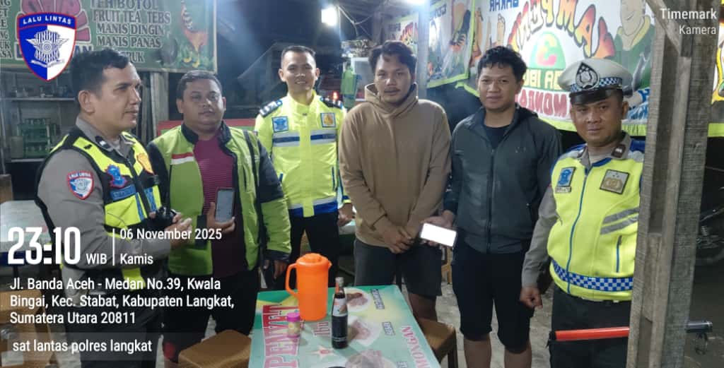 Langkat ( Sumut ) globalnusantara.id Di Jalan K.H. Z. Arifin, Stabat, jajaran Satuan Lalu Lintas (Sat Lantas) Polres Langkat menggelar kegiatan “Polantas Menyapa”, sebuah patroli dialogis yang sarat dengan pesan humanis dan edukatif bagi para pengemudi ojek online (Ojol) serta pengguna jalan lainnya. Kamis malam, 6 November 2025