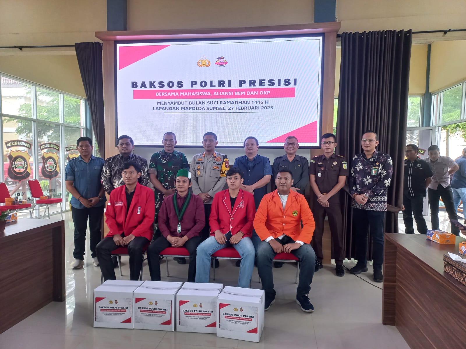 GlobalNusantara.id,OKU Baturaja, 27 Februari 2025 – Dalam rangka menyambut bulan suci Ramadhan 1446 H, Polres Ogan Komering Ulu (OKU) mengadakan kegiatan Bakti Sosial (Baksos) Polri Presisi bersama mahasiswa, Cipayung Plus, dan Organisasi Kepemudaan (OKP). Acara ini berlangsung pada Rabu (27/02/2025) di Rumah Kaca Polres OKU dan dihadiri oleh berbagai pihak, termasuk unsur Forkopimda Kabupaten OKU.