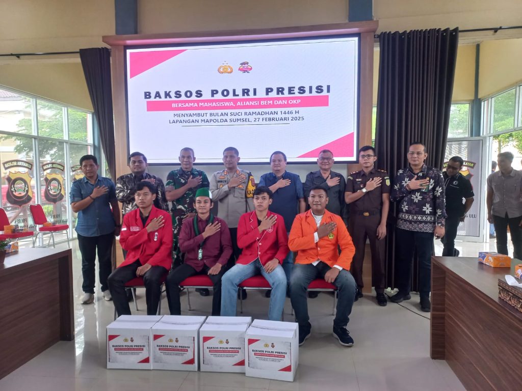 GlobalNusantara.id,OKU Baturaja, 27 Februari 2025 – Dalam rangka menyambut bulan suci Ramadhan 1446 H, Polres Ogan Komering Ulu (OKU) mengadakan kegiatan Bakti Sosial (Baksos) Polri Presisi bersama mahasiswa, Cipayung Plus, dan Organisasi Kepemudaan (OKP). Acara ini berlangsung pada Rabu (27/02/2025) di Rumah Kaca Polres OKU dan dihadiri oleh berbagai pihak, termasuk unsur Forkopimda Kabupaten OKU.