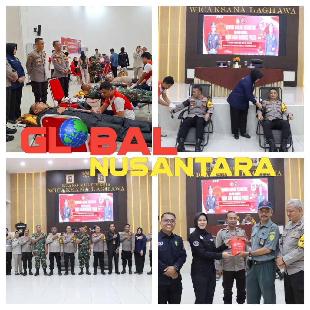 Donor Darah Serentak Dalam Rangka Hari Jadi Humas Polri Ke 73 Tahun mengusung Tema “ Mengabdi Untuk Negeri Humas Polri Pressisi Menuju Indonesia Maju “.