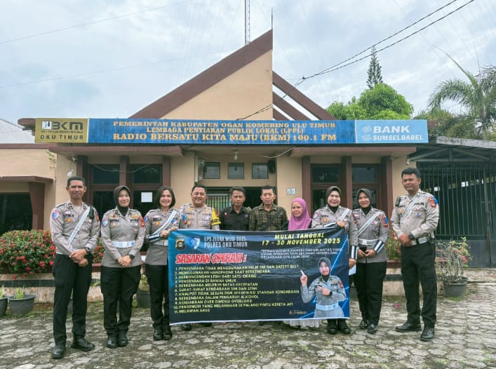 Polres OKU Timur. Globalnusantara.id –  Polres OKU Timur melaksanakan kegiatan penyuluhan keselamatan berlalu lintas melalui program Polantas Menyapa di Radio BKM 100,1 FM Martapura pada Selasa, 18 November 2025. Kegiatan ini merupakan bagian dari rangkaian Operasi Zebra Musi 2025 yang berlangsung selama 14 hari dan digelar serentak di seluruh Indonesia.