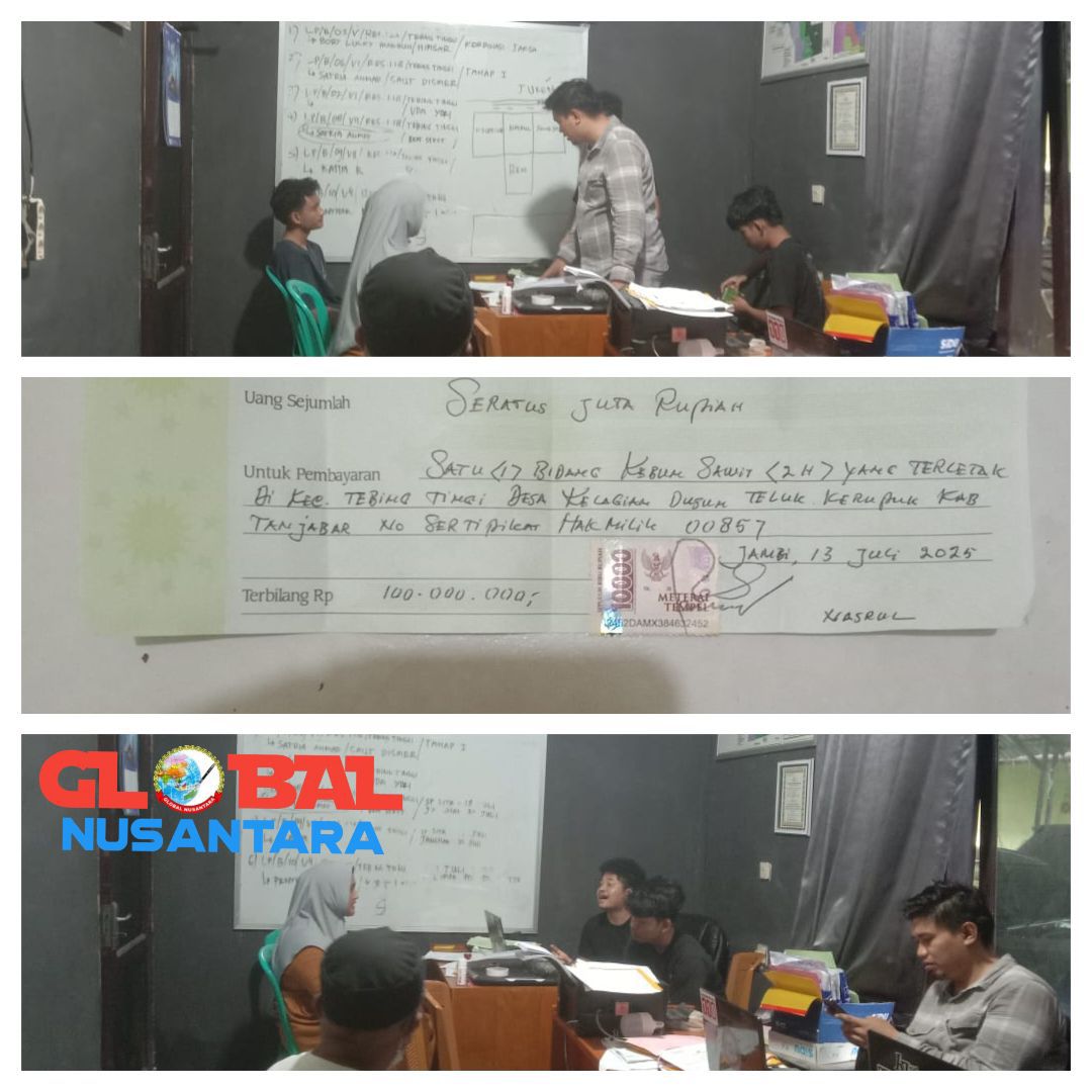 GlobalNusantara.id,Tanjung Jabung Barat, Agustus 2025 — Sengketa lahan sawit seluas dua hektare di Kecamatan Tebing Tinggi, Kabupaten Tanjung Jabung Barat (Tanjabar), Jambi, viral di media sosial setelah pembelinya yang sah, Awirman, tidak bisa menguasai kebun yang telah ia beli seharga Rp150 juta. Parahnya, buah sawit di lahan tersebut justru dipanen oleh pihak lain yang mengaku sebagai ahli waris.