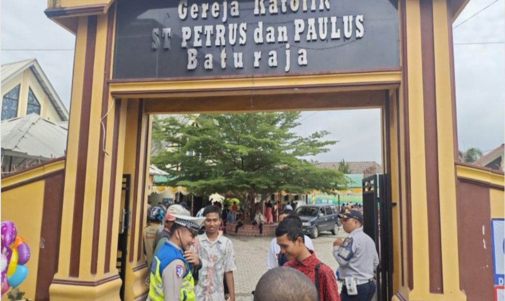 Pada Rabu (25/12/2024) pukul 07.00 WIB, perayaan ibadah Natal di Gereja Katolik St. Petrus Paulus, Kelurahan Air Gading, Kecamatan Baturaja Barat, Kabupaten Ogan Komering Ulu (OKU), berlangsung aman dan kondusif berkat pengamanan personel gabungan dari berbagai instansi.