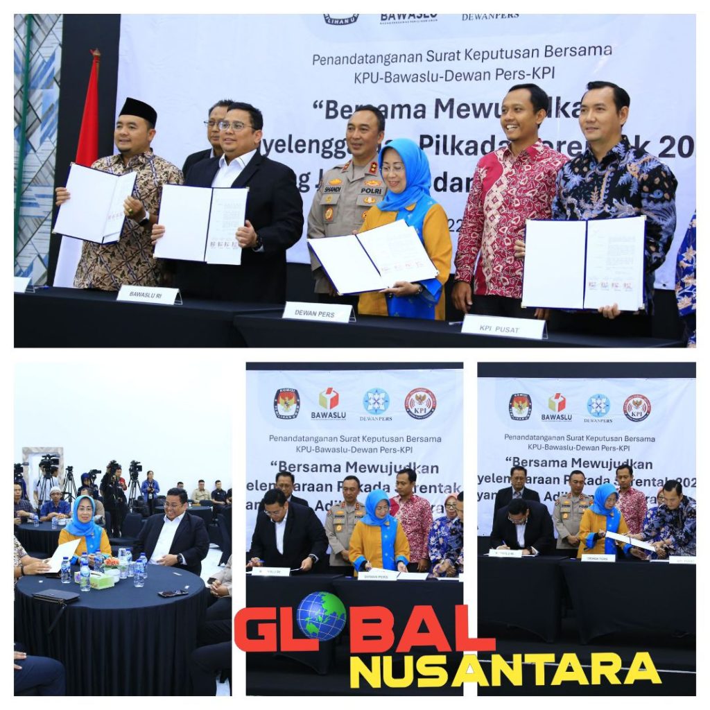 GlobalNusantara.com,JAKARTA – Kadivhumas Polri Irjen Pol Sandi Nugroho menghadiri penandatanganan Surat Keputusan Bersama (SKB) KPU, Bawaslu, KPI, dan Dewan Pers. SKB tersebut mengenai pembentukan Gugus Tugas Pemantauan Pemberitaan Pilkada 2024.