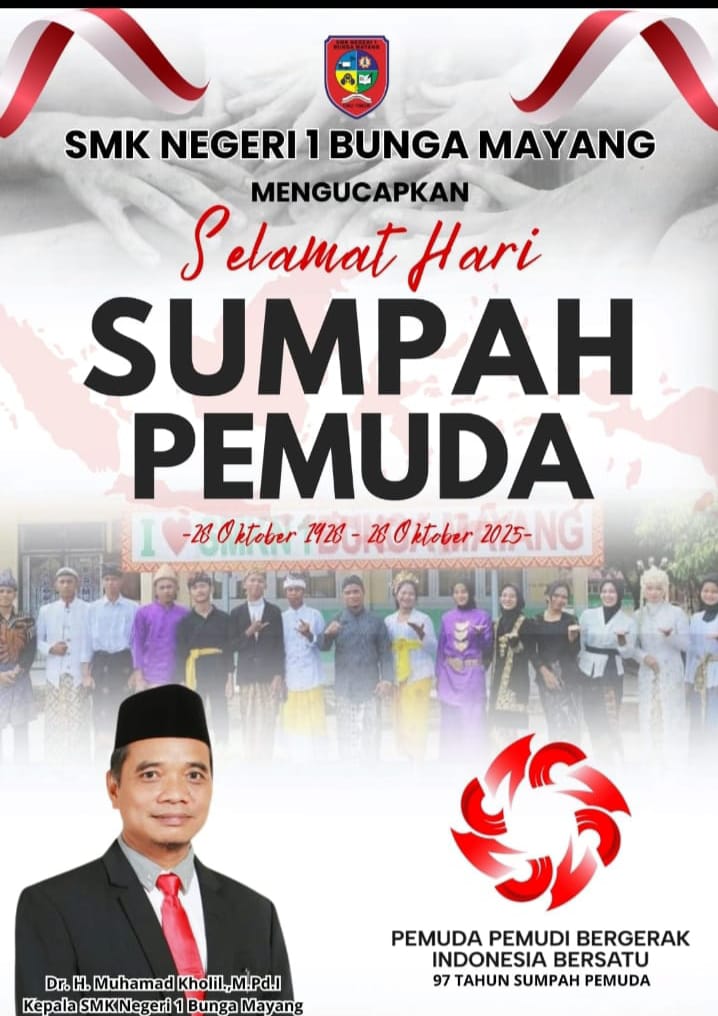 Dengan semangat Hari Sumpah Pemuda ke-97, SMKN 1 Bunga Mayang berkomitmen untuk terus menumbuhkan generasi muda yang tangguh, cerdas, dan berintegritas. Melalui pendidikan yang berkualitas dan semangat nasionalisme yang kuat, sekolah ini berharap dapat melahirkan peserta didik yang siap menjadi motor penggerak kemajuan bangsa di masa depan.
