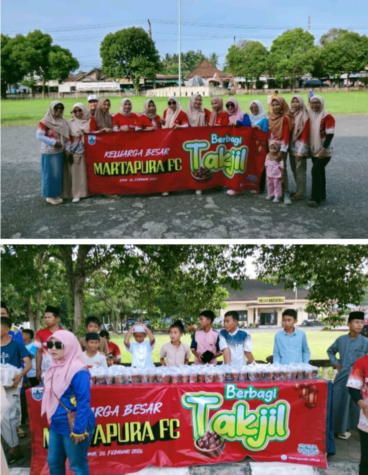 Martapura, OKU Timur. Globalnusantara.id – Sekolah Sepak Bola (SSB) Martapura FC bersama Polsek Martapura kembali menunjukkan kepedulian sosial dengan membagikan 500 paket takjil gratis kepada masyarakat pada Ramadhan ke-8 tahun 1447 Hijriyah. Kegiatan ini menjadi bagian dari komitmen keluarga besar Martapura FC untuk meraih keberkahan di bulan suci melalui aksi nyata yang langsung menyentuh masyarakat.