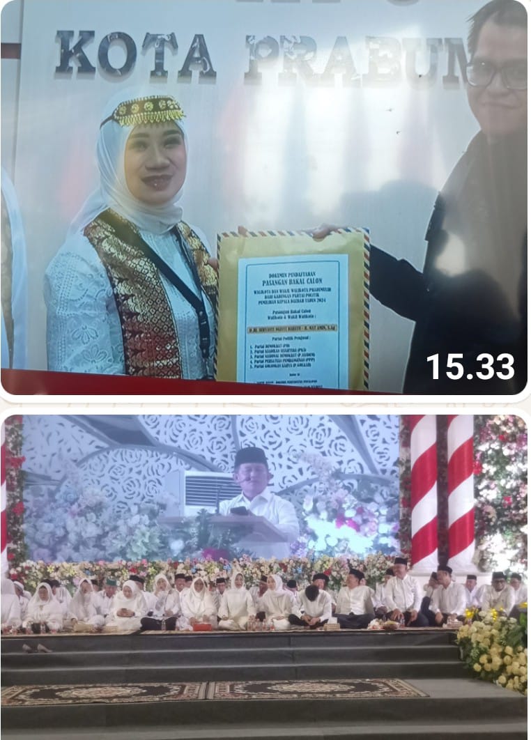 Prabumulih.-Global Nusantara.Bakal pasangan calon walikota dan wakil walikota,Ir.Ngesti – H.mat aminS.ag. secara resmi mendaftarkan diri sebagai peserta Pilkada di kantor Komisi Pemilihan Umum (KPU) Kota Prabumulih,Rabu 28 Agustus 2024 pukul 14.00 WIB. Kedatangan mereka disambut hangat oleh Ketua KPU Kota Prabumulih, Marta Dinata, yang didampingi oleh empat anggota komisioner lainnya.